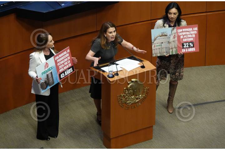 CIUDAD DE MÉXICO, 26FEBRERO2025.- Carolina Viggiano, senadora priísta, hace uso de la tribuna durante la sesión ordinaria en el Senado en la que se discutió las leyes secundarias en materia energética. FOTO: GALO CAÑAS/CUARTOSCURO.COM