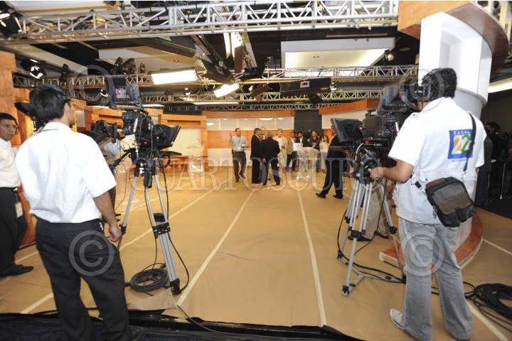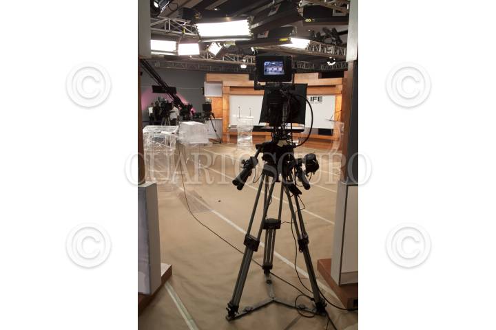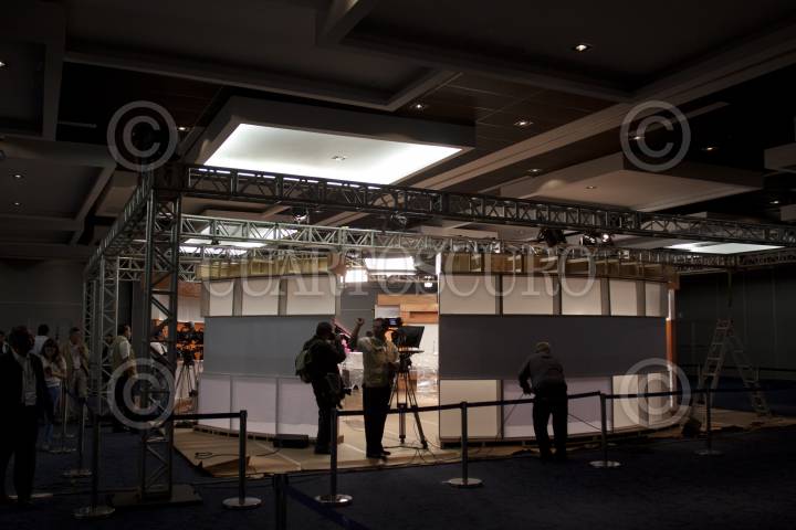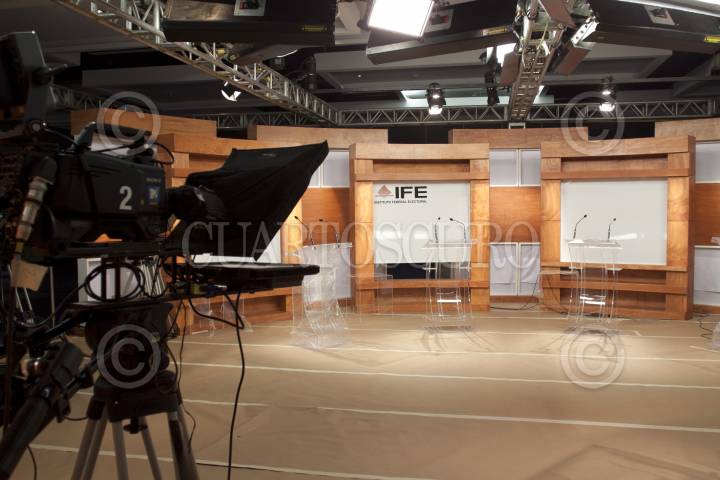 MÉXICO, D.F., 05MAYO2012.- Instalaciones del estudio televisivo en el cual se hará de celebrar el debate entre los candidatos presidenciales el día de mañana en punto de las 20:00, en instalaciones del WTC. FOTO: MOISÉS PABLO /CUARTOSCURO.COM