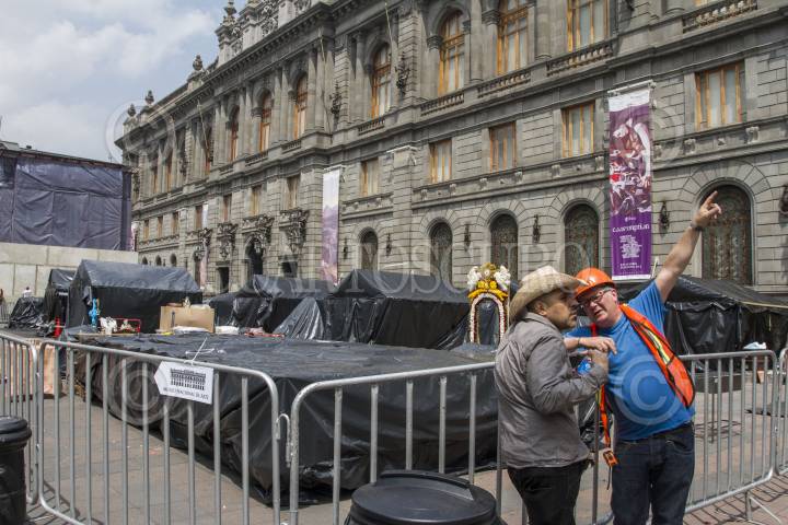 MÉXICO, D.F., 16MARZO2015.- Continúan los preparativos en el Centro Histórico para el set de filmación de la película James Bond. FOTO: ISAAC ESQUIVEL /CUARTOSCURO.COM