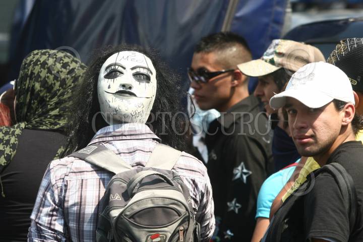 MÉXICO, D.F., 03MARZO2010.- Decenas de jóvenes pertenecientes a la organización "3 de Marzo" del Colegio de Ciencias y Humanidades Vallejo, se reunieron a las afueras de la central de autobuses del norte para celebrar su aniversario de dicha organización. Centenares de granaderos del Distrito Federal se encontraban custodiando los alrededores para que no se suscitara ningún disturbio. FOTO: SAÚL LÓPEZ/CUARTOSCURO.COM