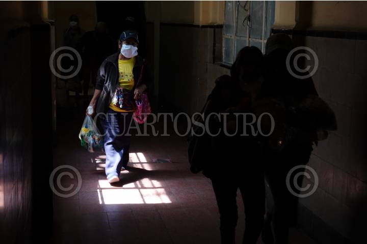 Una de las organizadoras en la entrega de ayuda a trabajadoras sexuales pide sana distancia entre las mujeres que esperan la ayuda
