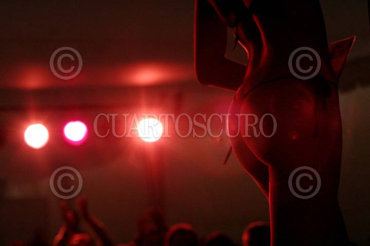 MÉXICO, D.F. 04JUNIO2005.- El segundo festival de cine erótico se lleva a cabo en la plaza de armas de la delegacion magdalena mixiuca, en la imágen una bailarina actua en un improvisado table dance instalado dentro de la muestra. FOTO: Miguel Dimayuga Meneses/CUARTOSCURO.COM