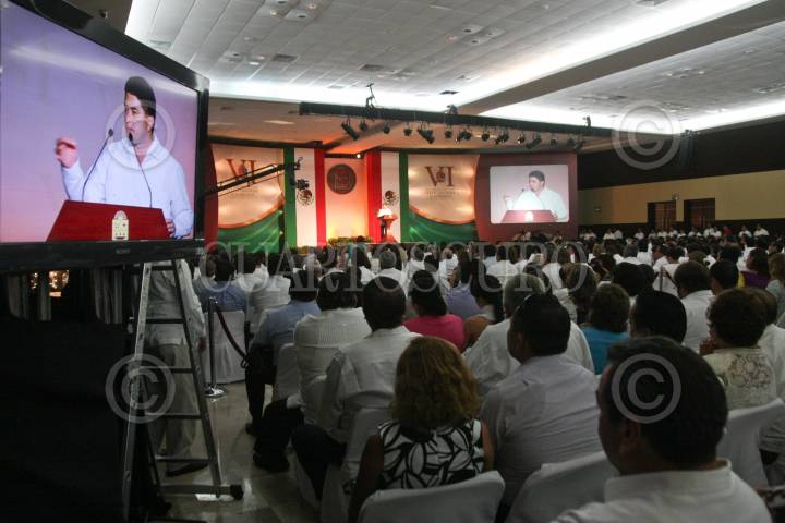 CHETUMAL, QUINTANA ROO, 26MARZO2011.- Félix González Canto rinde ante la sociedad, empresarios, políticos y pueblo en general su sexto y ultimo informe como gobernador constitucional en el Centro de Convenciones de esta ciudad capital. FOTO: MARCO POLO GUZMÁN HERNÁNDEZ/CUARTOSCURO.COM