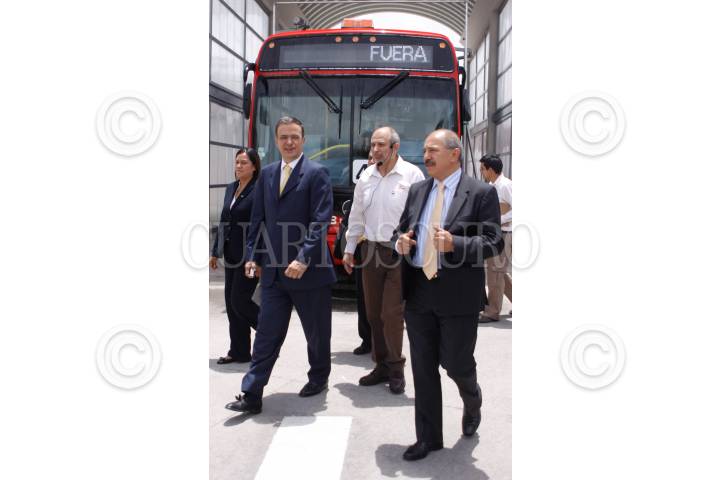 MÉXICO, D.F., 20JUNIO2011.- Como parte del sexto aniversario del sistema de transporte colectivo Metrobús, el jefe de gobierno local, Marcelo ebrard, inauguró el patio de encierro Júpiter, donde se le dará mantenimiento a los autobuses. FOTO: IVÁN STEPHENS/CUARTOSCURO.COM