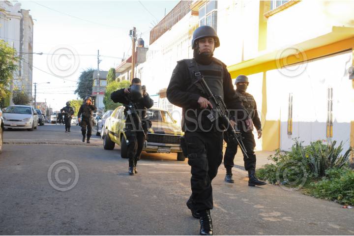 NEZAHUALCOYOTL, ESTADO DE MÉXICO, 16ENERO2011.- Al menos nueve personas resultaron muertas cuando un grupo armado ingreso a una vivienda en la colonia Esperanza al rededor de las 06:00 de la mañana; algunos sujetos que intentaron escapar quedaron tirados en la calle. Al lugar llegaron elementos de la Agencia de Seguridad Estatal para resguardar la zona. FOTO: LUIS CARBAYO/CUARTOSCURO.COM