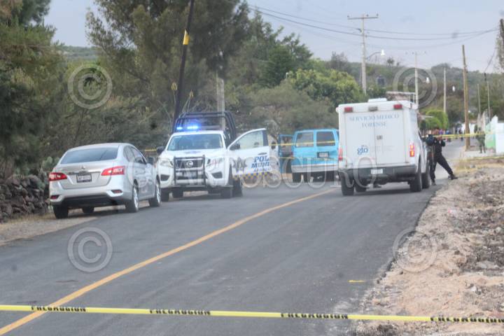 Escena donde fueron emboscados cuatro hombres abordo de una camioneta en Apaseo el Grande