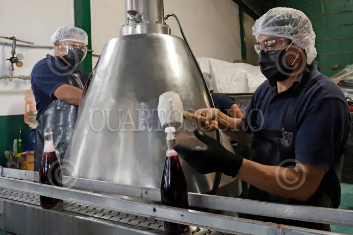 HUEJOTZINGO, PUEBLA, 31DICIEMBRE2023.- Trabajadores de la fabrica Maifrut elaboran Sidra Artesanal en el municipio de Huejotzingo, cuna de dicha bebida que es solicitada para los brindis de Año Nuevo. FOTO: MIREYA NOVO/CUARTOSCURO.COM