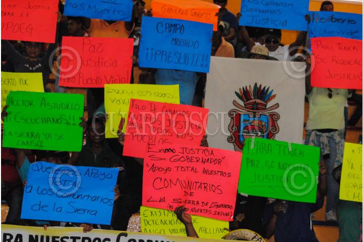CHILPANCINGO, GUERRERO, 16NOVIEMBRE2015.-Habitantes de 80 comunidades de la Sierra de Leonardo Bravo se concentraron en el crucero de Chichihualco, con la intención fue bloquear la autopista para presionar al gobierno y les haga justicia por la violencia que han sufrido. Salieron en caravana de autos hasta llegar a la unidad deportiva Crea ubicada frente a la delegación de la policía federal en la avenida de La Juventud, donde permanecen en espera de que el gobernador Héctor Astudillo Flores los reciba. FOTO: JOSÉ I. HERNÁNDEZ /CUARTOSCURO.COM