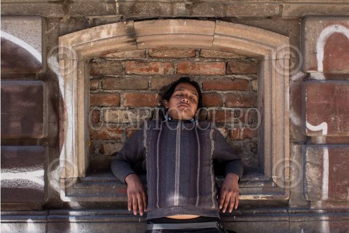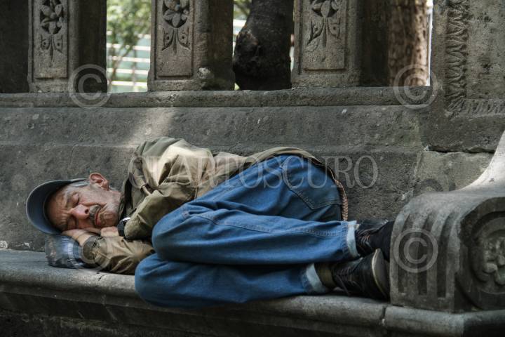 MÉXICO, D.F., 24ENERO2016.- Un hombre en situación de calle toma una siesta en una de la calles de la ciudad. FOTO: ISABEL MATEOS /CUARTOSCURO.COM