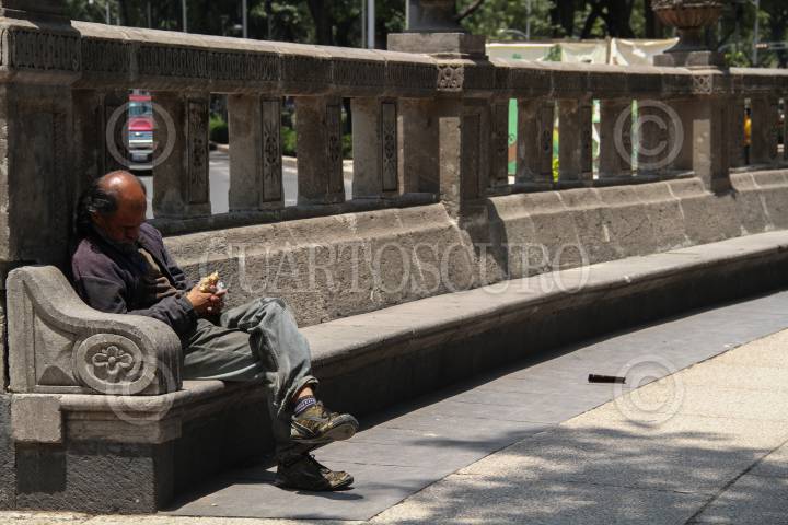 MÉXICO, D.F., 17MARZO2015.- Un hombre duerme en una banca del paseo de la reforma. FOTO: SAÚL LÓPEZ /CUARTOSCURO.COM