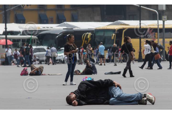 Un hombre duerme a pierna suelta en la plancha del Zócalo.