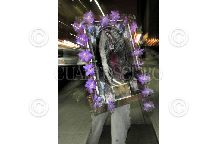 MÉXICO D.F., 12DICIEMBRE2009.- Algunos peregrinos rezagados, que siguen su camino sobre paseo de la Reforma con rumbo a la Basílica sin que sean vencidos por el cansancio sostenidos únicamente por la Fe a sus espaldas. FOTO: LUIS CARBAYO/CUARTOSCURO.COM