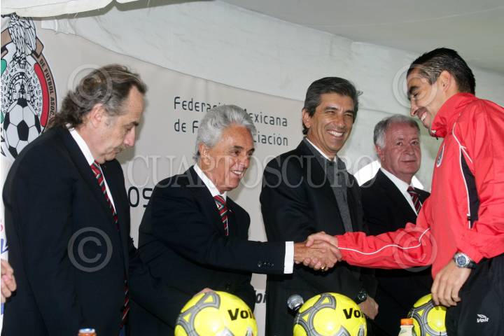 MÉXICO, D.F., 15ENERO2009.- Decio de María y Justino Compeán, secretario y presidente de la Federación Mexicana de Futbol, respectivamente, entregaron los gafetes FIFA a arbitros del futbol mexicano. En la imagen, Marco Antonio Rodriguez. FOTO: ISAAC ESQUIVEL/CUARTOSCURO.COM