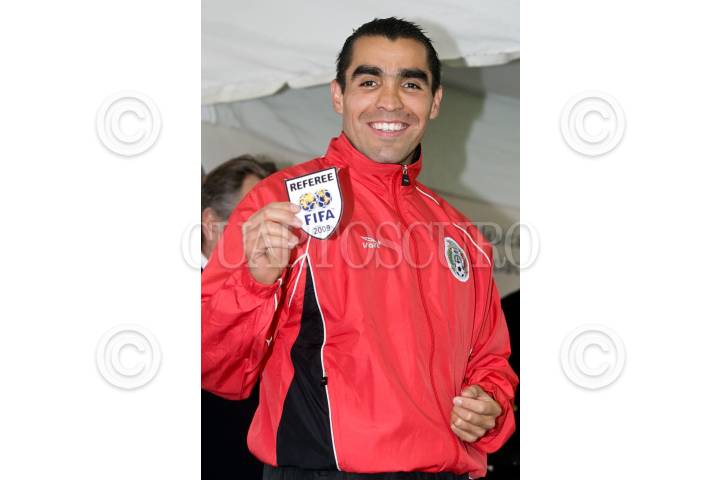 MÉXICO, D.F., 15ENERO2009.- El árbitro mexicano Marco Antonio Rodriguez Decio de María recibió el gafete internacional de FIFA. FOTO: ISAAC ESQUIVEL/CUARTOSCURO.COM