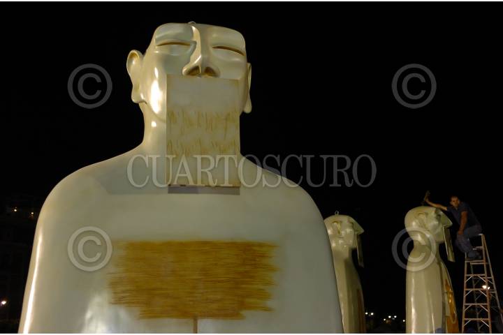 MÉXICO, D.F., 26OCTUBRE2011.- Aspectos de las esculturas de la exposición Nuestros Silencios del artista Rivelino que se expone en el Zócalo de la ciudad. FOTO: RODOLFO ANGULO/CUARTOSCURO.COM