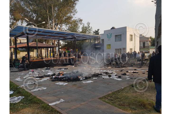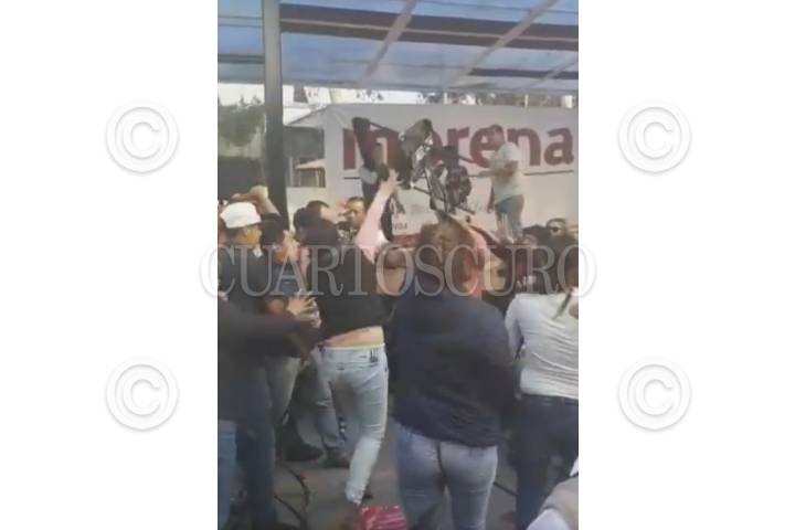 CIUDAD DE MÉXICO, 03ENERO2018.- Presuntos seguidores del perredista Mauricio Toledo irrumpieron violentamente en un evento de la precandidata de Morena a la Jefatura de Gobierno, Claudia Sheinbaum, los agresores aventaron sillas , jitomates y huevos. La gresca se suscitó en un mitin en la colonia Villa Quietud, delegación Coyoacán. FOTO: CUARTOSCURO.COM