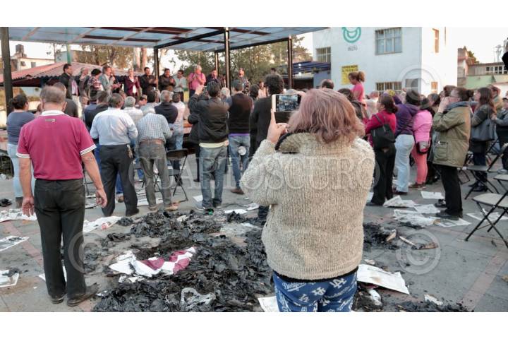 CIUDAD DE MÉXICO, 03ENERO2018.- Presuntos seguidores del perredista Mauricio Toledo irrumpieron violentamente en un evento de la precandidata de Morena a la Jefatura de Gobierno, Claudia Sheinbaum, los agresores aventaron sillas , jitomates y huevos. La gresca se suscitó en un mitin en la colonia Villa Quietud, delegación Coyoacán. Sheinbaum reanudó el mitin y llamó a la Secretaría de Seguridad Pública a que resguarde la seguridad de sus eventos. FOTO: CUARTOSCURO.COM