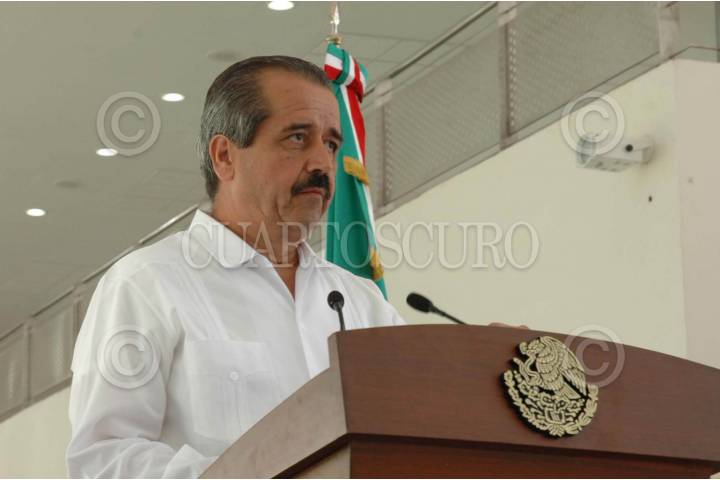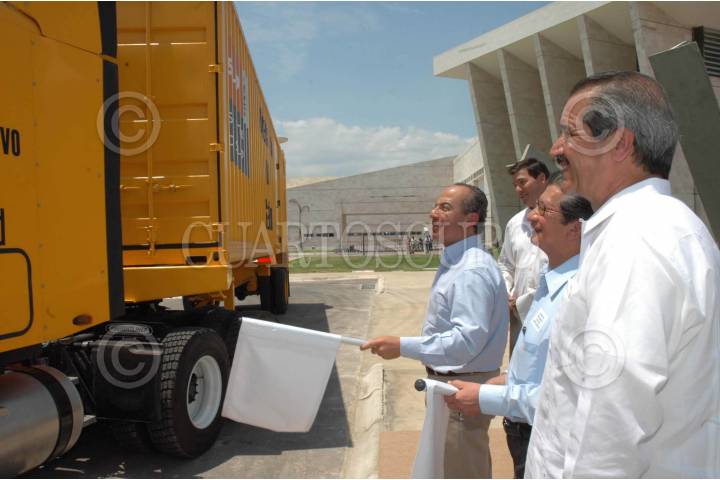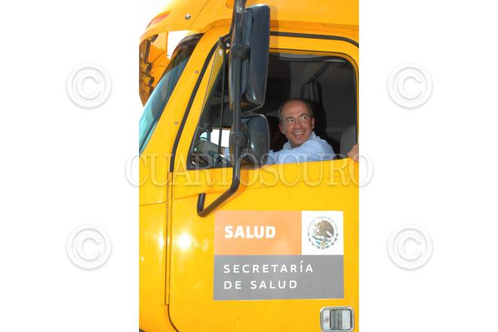 MERIDA, YUCATAN09ABRIL2007.-El presidente Felipe Calderon en compañia del srio de salud, Jose Angel Cordova Villalobos y el gobernador del estado, Patricio Patron Laviada, dieron el banderazo de salida a las caravanas de salud que recorreran el estado, asi mismo entregaron tarjetas simbolicas de afiliacion del nuevo seguro para una nueva generacion a niños que representan a mas de 64 mil nuevos ninos asegurados, todo esto en el marco del "dia mundial de la salud". FOTO EDUARDO MORALES/CUARTOSCURO.COM
