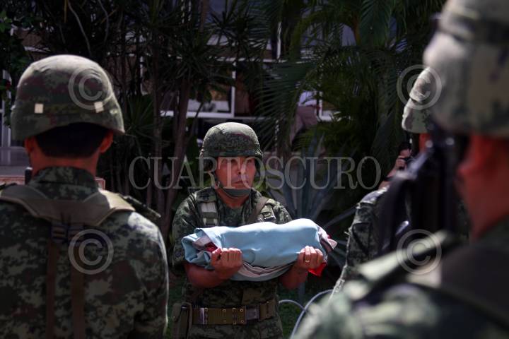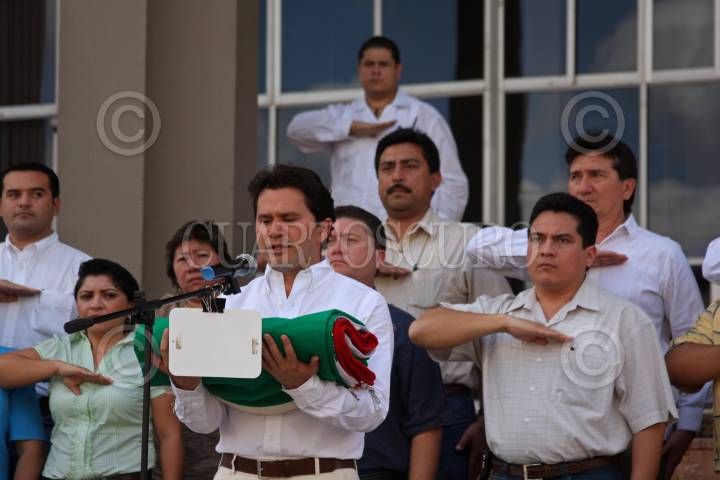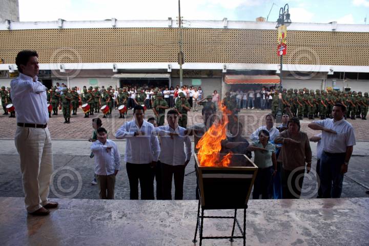 MÉRIDA, YUCATÁN, 23FEBRERO2011.- En la explanada del Recinto del Poder Legislativo se realizo la ceremonia de incineración y sustitución de la bandera del Congreso del Estado; en el acto participaron elementos de la X Región Militar con su escolta los cuales entregaron la bandera al presidente del Congreso del Estado, Mauricio Sahui Rivero. FOTO: FRANCISCO BALDERAS/CUARTOSCURO.COM