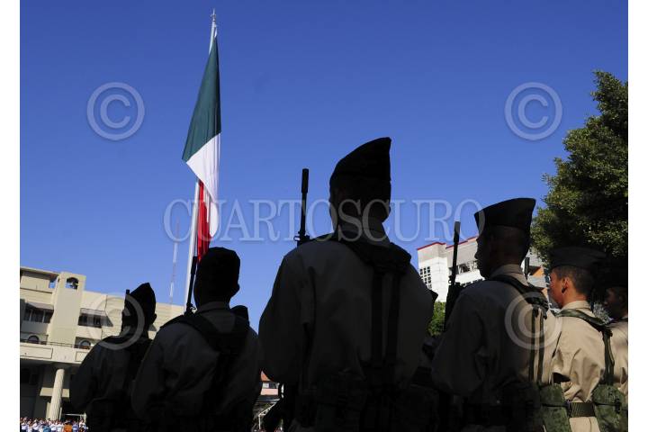 CHILPANCINGO, GUERRERO2014.- Autoridades Civiles y militares de la 35 zona militar, alumnos de diferentes planteles educativos, así como del ayuntamiento capitalino, que dirige Mario Moreno Arcos, presenciaron la ceremonia de incineración de bandera y sustitución de la misma, que se llevó acabo en la plaza primer Congreso de Anáhuac, de esta ciudad capital. FOTO: JOSÉ
