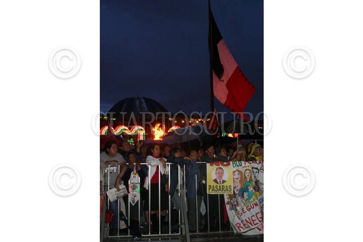 MÉXICO, D.F. 15SEPTIEMBRE2006.- Simpatizantes de López Obrador cantaron el Himno Nacional junto con su lider frente al templete ubicado en la plancha del Zócalo, minutos después de que dicho acto terminara, integrantes del movimiento de resistencia gritaron consignas. FOTO: PAOLA HIDALGO/CUARTOSCURO.COM