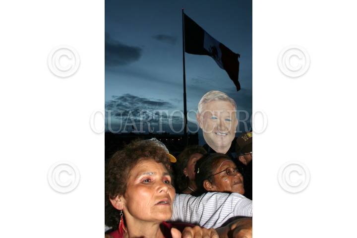 MÉXICO, D.F. 14SEPTIEMBRE2006.- Simpatizantes de López Obrador escuchan las palabras de su lider al hacer el anuncio de que el jefe de gobierno, Alejandro Encinas será quien de el grito de independencia la noche del 15 de septiembre. FOTO: PAOLA HIDALGO/CUARTOSCURO.COM