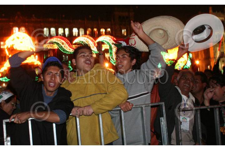 MÉXICO, D.F. 15SEPTIEMBRE2006.- Simpatizantes de López Obrador cantaron el Himno Nacional junto con su lider frente al templete ubicado en la plancha del Zócalo, minutos después de que Alejandro Encinas diera el grito de independencia. FOTO: PAOLA HIDALGO/CUARTOSCURO.COM