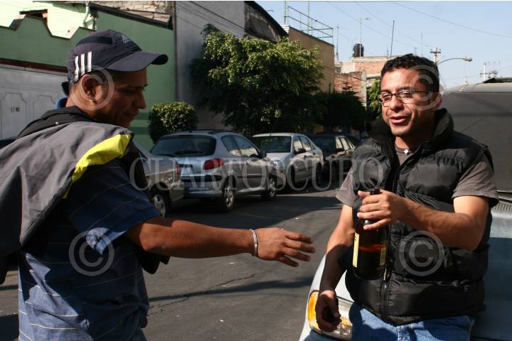 MÉXICO, D.F., 25DICIEMBRE2008.- Con motivo de las fiestas navideñas en algunas de las calles de la ciudad se puede observar a gente bebiendo, o simplemente continuando con la celebración. FOTO:SÁSHENKA GUTIÉRREZ/CUARTOSCURO.COM