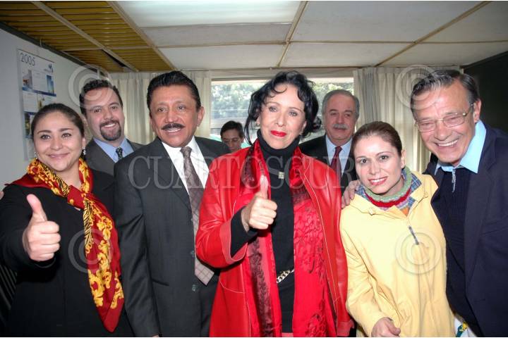 MEXICO, D.F. 11ENERO2005.- Nancy Makenzie, quien dobla la voz de March, Humberto Veléz (Homero), Paty Acevedo, (Lisa) y Claudia Mota (Bart) en la caricatura "Los Simpsons" realizaron una conferencia de prensa para manifestar su postura ante la posibilidad de que sean sustituídos por otros actores debido a que la compañía Grabaciones y Doblajes Internacionales, propiedad de las familias Millet y Bilbatúa, se negó en 2004 a renovar contrato para este año con la Asociación Nacional de Actores (ANDA). FOTO:Iván Stephens/CUARTOSCURO.COM