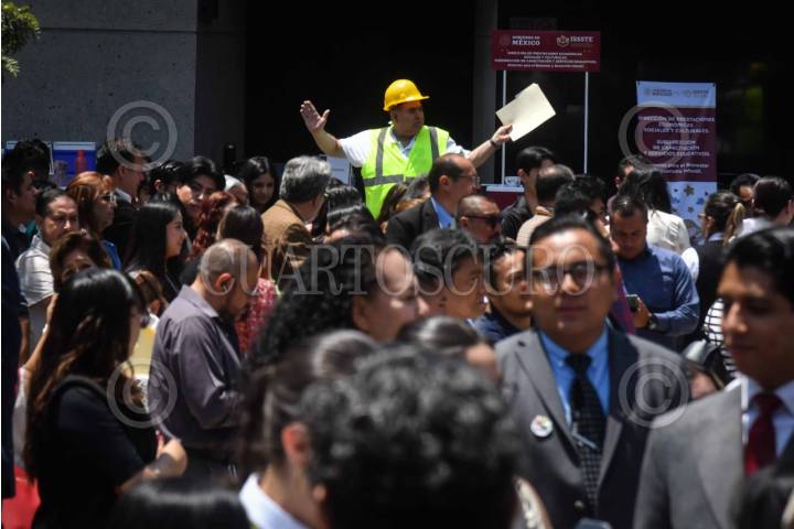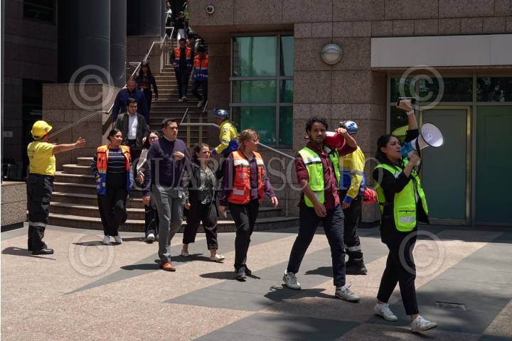 CIUDAD DE MÉXICO 29ABRIL2025.- Cientos de personas realizaron el ejercicio de evacuación de zonas de riesgo, durante el Primer Simulacro Nacional 2025, con la hipótesis de un sismo de magnitud 8.1 con epicentro en Tehuantepec, Oaxaca,. FOTO: ROGELIO MORALES CUARTOSCURO.COM