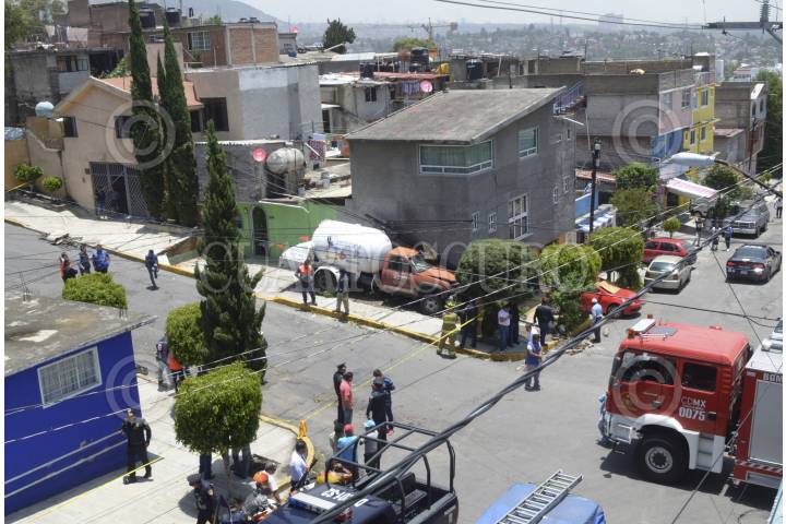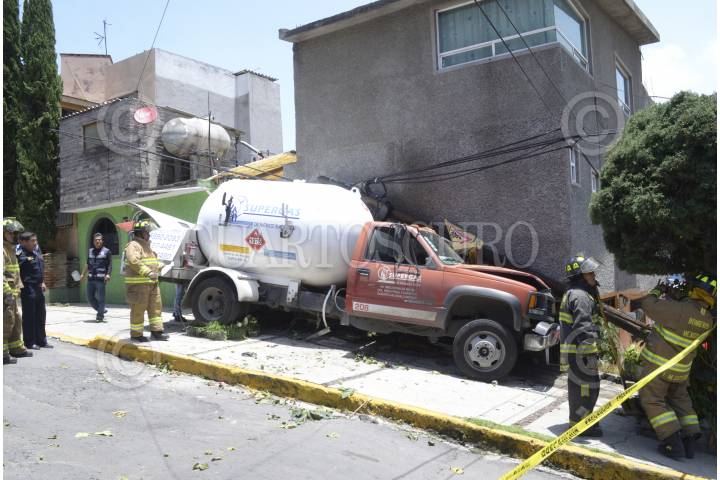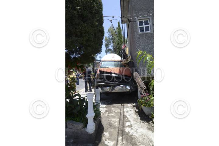 MÉXICO, D.F., 23JUNIO2015.- Una unidad de la empresa Super Gas se quedó sin frenos y se estrelló contra una casa, esto en la calle de Yobain y Tukas colonia Popular Santa Teresa en Tlalpan. FOTO: ARMANDO MONROY /CUARTOSCURO.COM