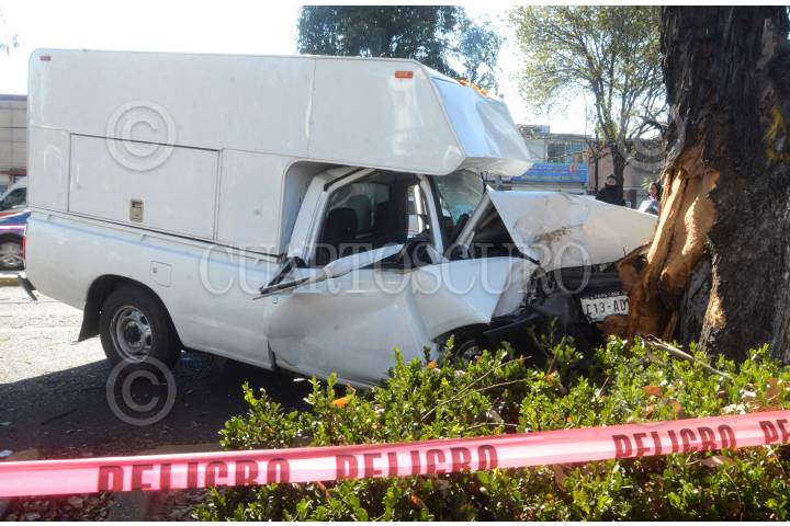 NAUCALPAN, ESTADO DE MÉXICO, 05MARZO2016.- Un hombre que viajaba de copiloto en una camioneta que se quedó sin frenos, murió al estrellarse el vehículo el chocar contra un árbol sobre la avenida Gustavo Baz y calle de Hacienda de Agave en la colonia Haciendas de Echegaray. FOTO: ARMANDO MONROY /CUARTOSCURO.COM