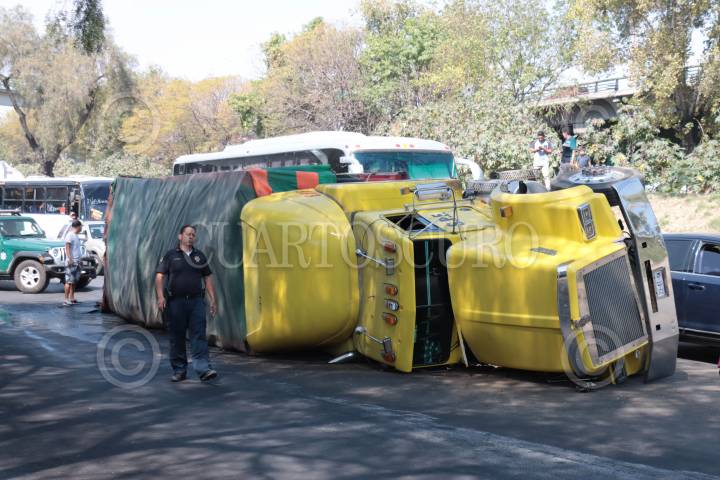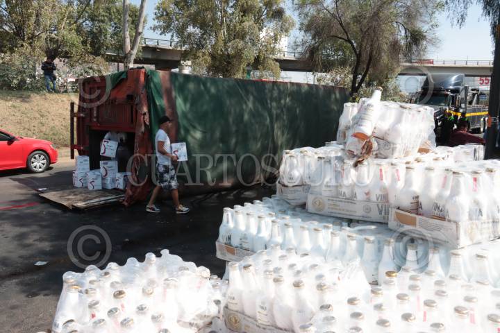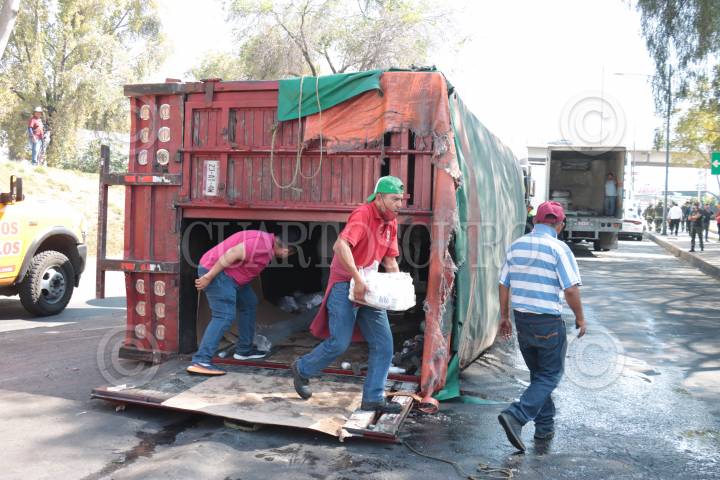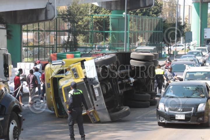 Un camión se volcó tras quedarse presuntamente sin frenos mientras circulaba en la avenida Tenayuca en la alcaldía Gustavo A. Madero.