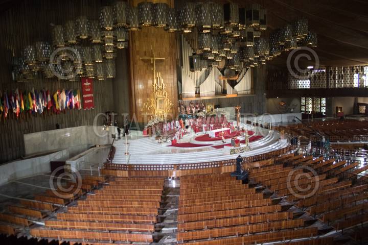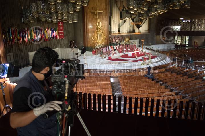 Un camarógrafo graba la misa en la Basílica de Guadalupe.