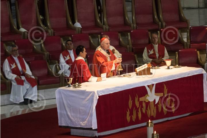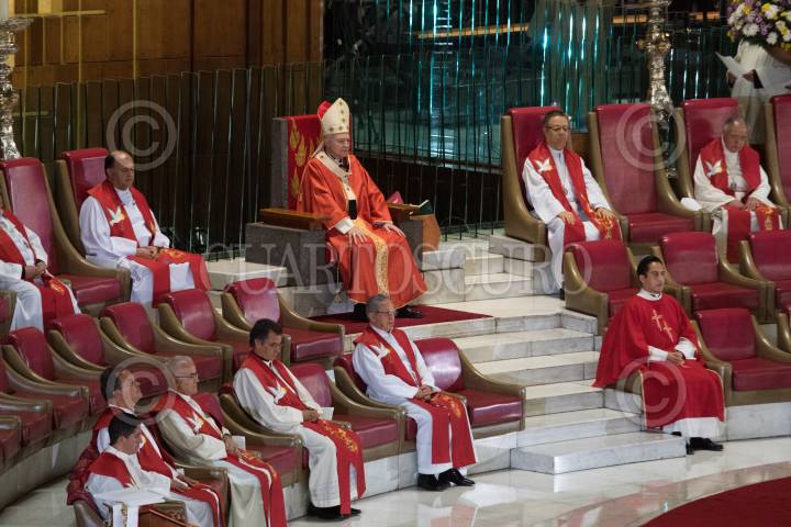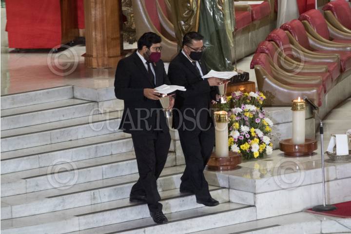 Carlos Aguiar Retes durante la misa que fue celebrada sin asistentes.