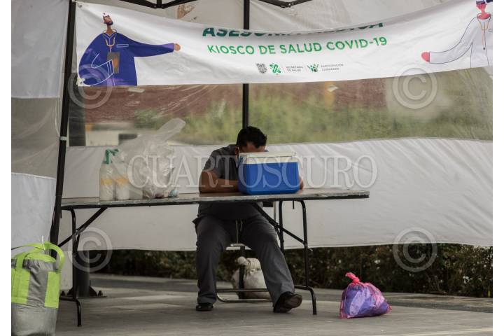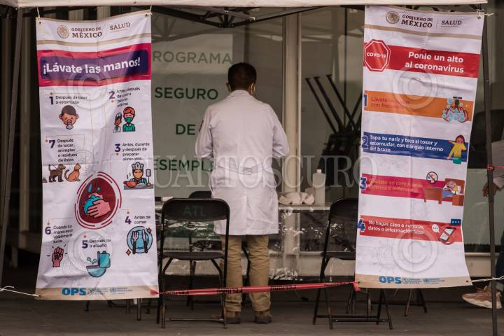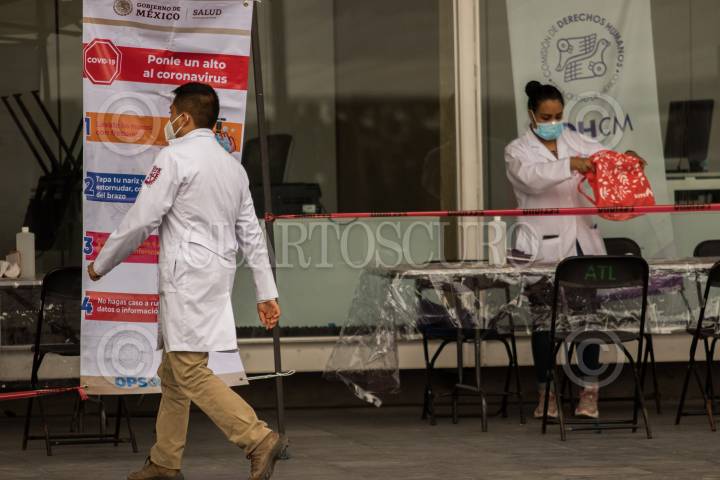 Un módulo para realizar pruebas de Covid 19, se instaló por algunos minutos, en la explanada de la alcaldía de Miguel Hidalgo. Ninguna persona se realizo esta importante prueba.