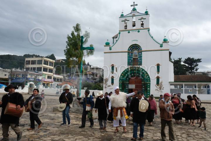 SAN JUAN CHAMULA, CHIAPAS, 20JUNIO2025.- Los pobladores de la comunidad de Tres Cruces, en este municipio tsotsil, celebran el Día de Corpus Christi con una misa católica y diversas expresiones de la cultura tradicional maya tsotsil, que reflejan el sincretismo religioso y la fuerza de sus raíces comunitarias. FOTO: ISABEL MATEOS HINOJOSA /CUARTOSCURO.COM