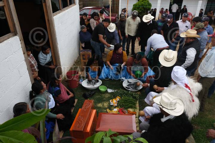 SAN JUAN CHAMULA, CHIAPAS, 04OCTUBRE2024.- Al cumplirse los primeros seis meses del cargo tradicional de Alférez, en la comunidad maya tsotsil de la región, el encargado incentiva a un gran número de personas para realizar la costumbre del lavado de ropa de los santos que se encuentran en la iglesia de la cabecera municipal, al ritmo del arpa, la guitarra y el tambor, decenas de personas con mucha fe se encomiendan para realizar sus respectivos cargos. FOTO: ISABEL MATEOS /CUARTOSCURO.COM