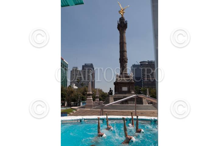 MÉXICO, D.F., 10OCTUBRE2010.- El equipo de Nado Sincronizado realiza una rutina durante el Festival Olímpico Bicentenario que se realiza este fin de semana sobre el Paseo de la Reforma. FOTO: RODOLFO ANGULO/CUARTOSCURO.COM
