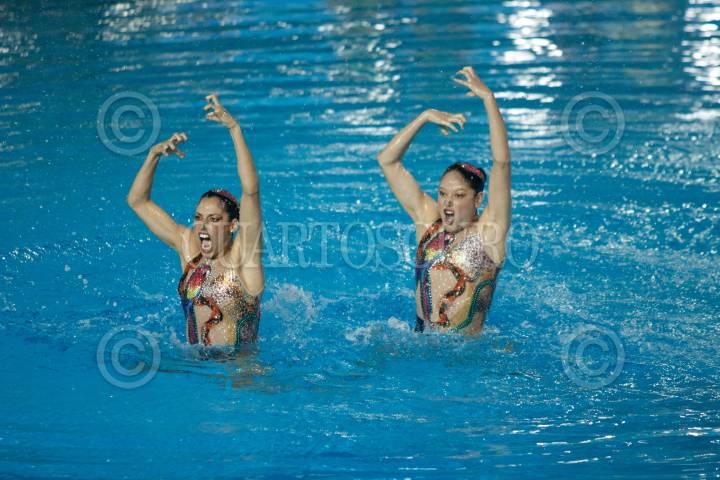 GUADALAJARA, JALISCO, 18OCTUBRE2011.- Blanca Isabel Delgado y Nuria Lidon Diosdado durante su participación en la prubeba de nado sincronizado en los Juagos Panamericanos Guadalajara 2011. FOTO: IVÁN STEPHENS/CUARTOSCURO.COM