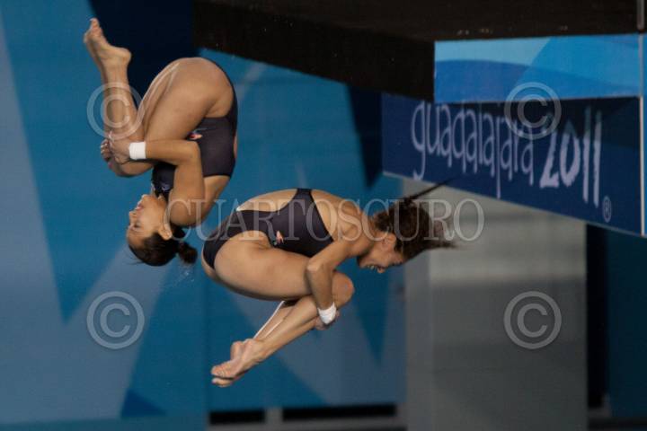 GUADALAJARA, JALISCO, 27OCTUBRE2011.- Paola Espinosa y Tatiana Ortiz obtuvieron la medalla de oro en clavados sincronizados de los Juegos Panamericanos Guadalajara 2011. FOTO: IVÁN STEPHENS/CUARTOSCURO.COM