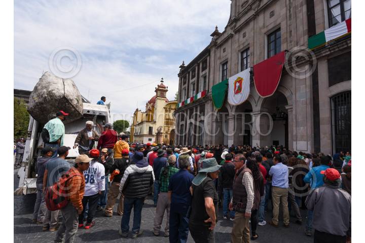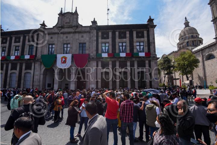 Trabajadores sindicalizados de Toluca protestaron por la violencia ejercida en contra de tres de sus compañeros por parte de la Policía Municipal de Toluca.