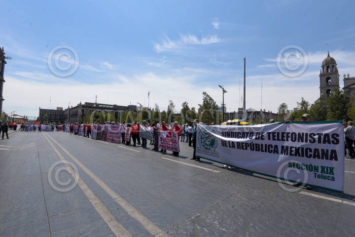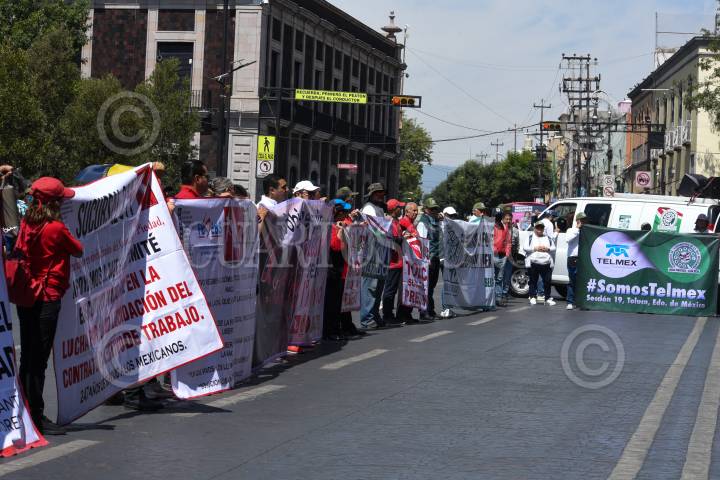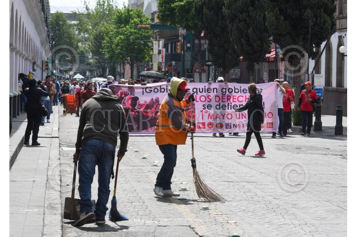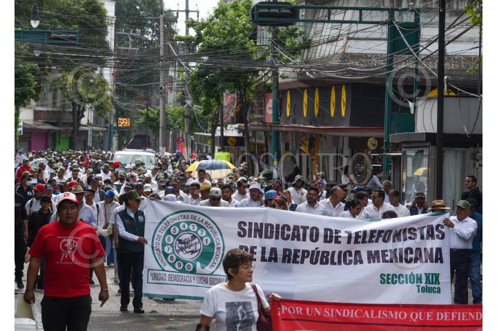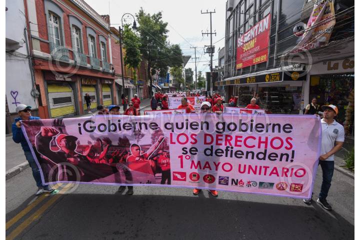 TOLUCA, ESTADO DE MÉXICO, 01MAYO2025.- Integrantes de diversos sindicatos marcharon este 1 de mayo Día del Trabajo en la capital mexiquense exigiendo se respeten los derechos laborales, la aprobación de una jornada laboral de 40 horas, pagos justos entre otras cosas. FOTO: CRISANTA ESPINOSA AGUILAR /CUARTOSCURO.COM