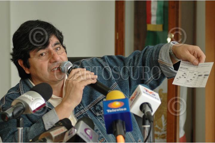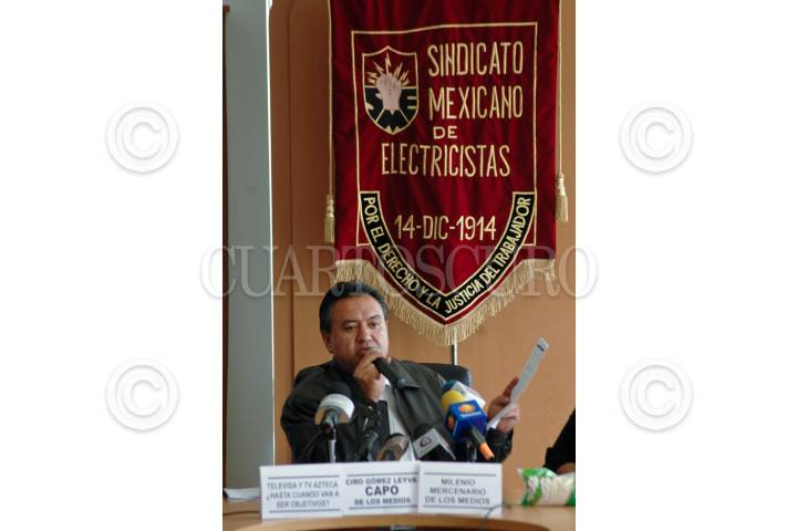 MÉXICO, D.F., 04NOVIEMBRE2009.- Fernando Amezcua, secretario del exterior del Sindicato Mexicano de Electricistas (SME) durante una conferencia de prensa esta mañana en la sede de este sindicato. FOTO: RODOLFO ANGULO/CUARTOSCURO.COM