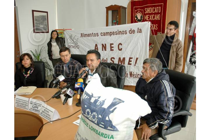 MÉXICO, D.F., 04NOVIEMBRE2009.- Martín Esparza, secretario general del Sindicato Mexicano de Electricistas (SME) durante una conferencia de prensa esta mañana en donde recibió a miembros de la Asociación Nacional de Empresas Comercializadores de Productores del Campo (ANEC) que llevaron un donativo de arroz a la sede de este sindicato. FOTO: RODOLFO ANGULO/CUARTOSCURO.COM
