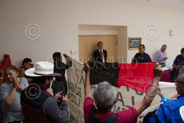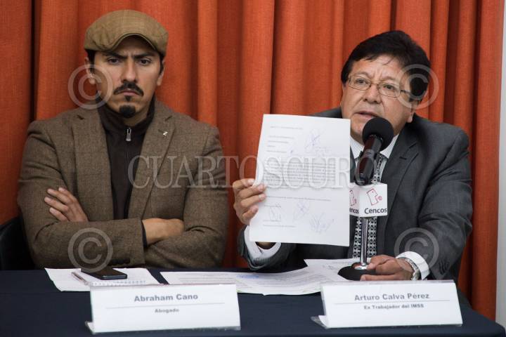 CIUDAD DE MÉXICO, 02MARZO2016.- El abogado Abraham Cano y Arturo Calva Pérez ex trabajador del IMSS, solicitaron la destitución del Diputado Manuel Vallejo Barragán como Secretario General del Sindicato Nacional de Trabajadores del Seguro Social, ya que lo acusan de no representar a los trabajadores sino a su partido político. FOTO: TERCERO DÍAZ /CUARTOSCURO.COM