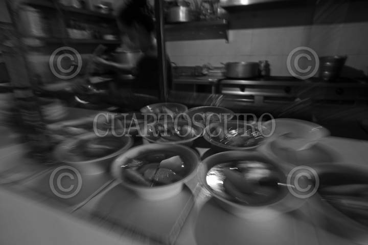 Una asistente del albergue Amigos de Juanita y Fernando A.C., sirve los platos de comida que se disponen a recibir los pacientes de la institución en un día común en la institución que alberga a 52 personas con problemas crónico degenerativos en estado de abandono.