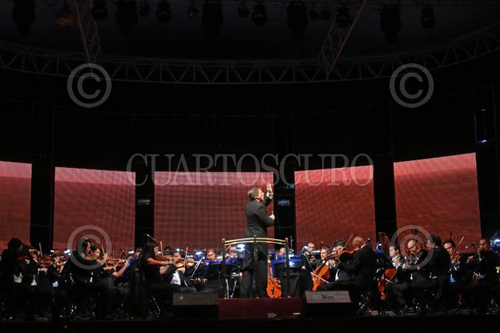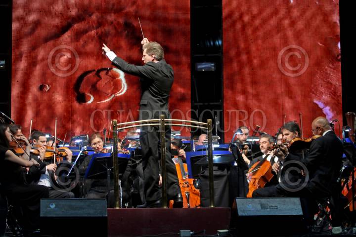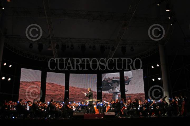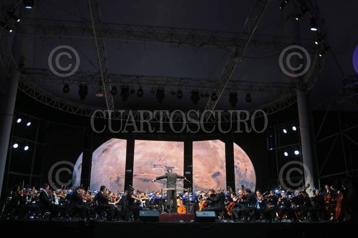 GUADALAJARA, JALISCO. 29NOVIEMBRE2016.- Esta noche en el Foro FIL se presento la Orquesta Filarmónica de Jalisco y dirigida por Marco Parisotto se llevo a cabo una puesta llamada cine sinfónico denominado “Sinfonía de los Planetas” del autor Gustav Holst, esto en el marco de la edición 30 de la Feria Internacional del Libro de Guadalajara FIL, que se lleva a cabo en la Expo del 26 de noviembre al 04 de diciembre. FOTO : FERNANDO CARRANZA GARCIA / CUARTOSCURO.COM