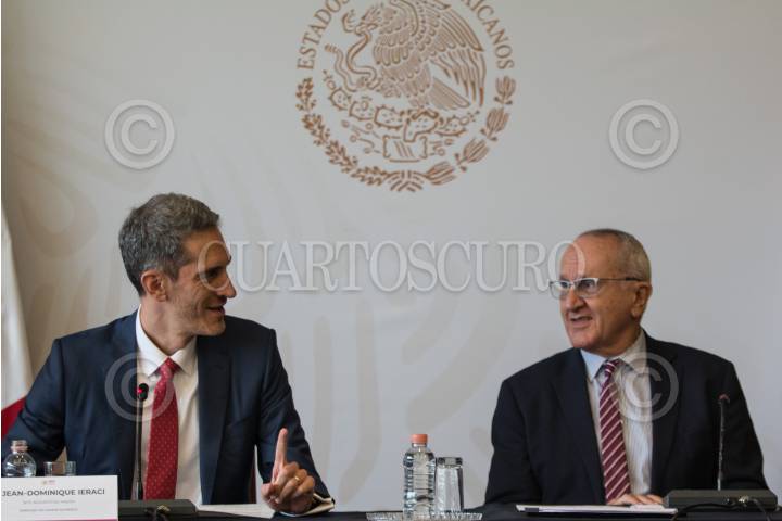 CIUDAD DE MÉXICO, 17JULIO2019.- Jesús Seade, subsecretario para América del Norte; Jean- Dominique Iearci; Cristóbal Maryán, compositor, y Mark Gillespie, director creativo, general manager Orquesta de las Américas, presentaron la pieza sinfónica “Tres Cuartos de Cien” en conmemoración del 75 aniversario de las relaciones diplomáticas entre México y Canadá. FOTO: ANDREA MURCIA /CUARTOSCURO.COM