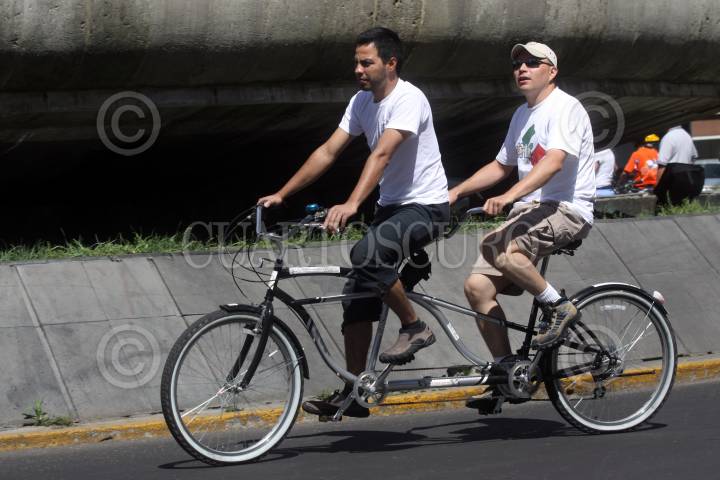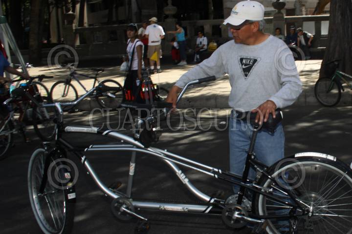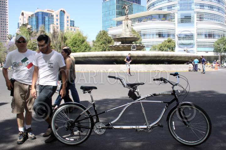 MÉXICO, D.F., 14MARZO2010.- Fue puesto en marcha el programa Bici a Ciegas para personas sin vista o con defectos de visión. Las asociaciones civiles “Muévete por tú Ciudad”, Contacto Braile y Bicitekas ofrecen todos los Domingos un singular recorrido para invidentesel cuál brindará paseos en bicicletas TANDEM (para dos personas) durante el paseo ciclista. FOTO: SÁSHENKA GUTIÉRREZ/CUARTOSCURO.COM